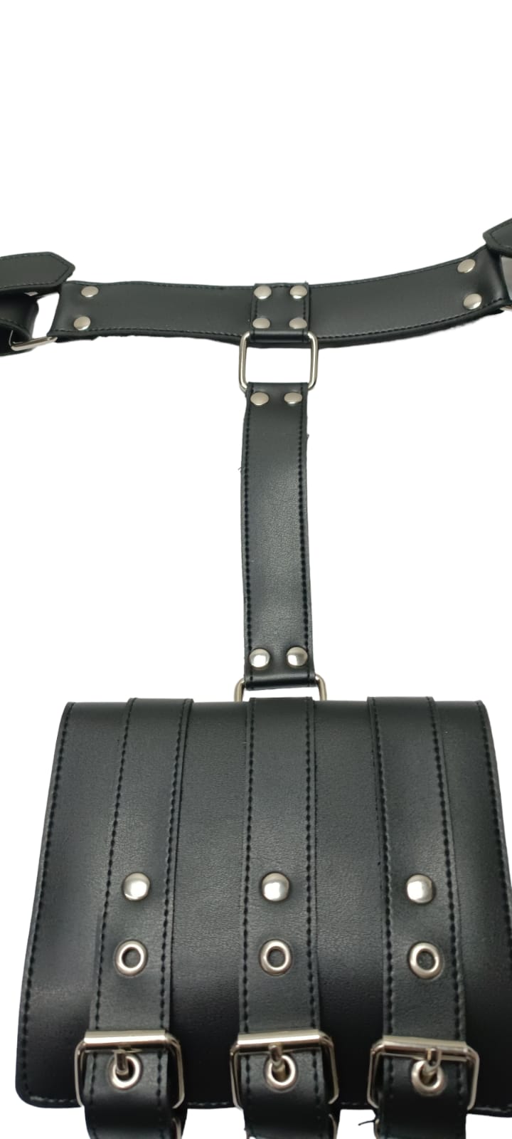 Deri kollardan ve ellerden bağlamalı tasarım, benzersiz bir estetik ve rahatlık sunar.